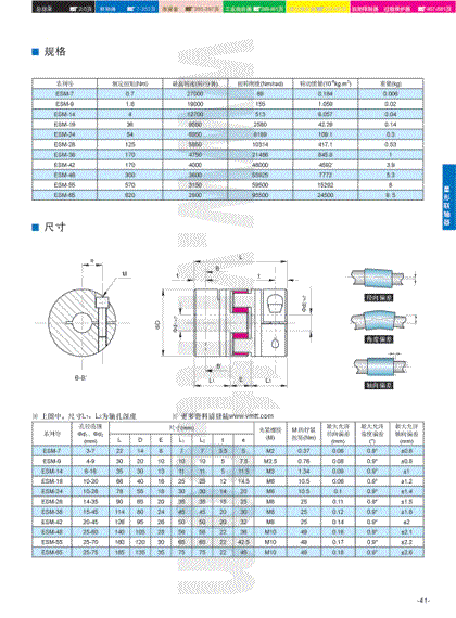 ·适用场合:伺服电机、步进电机、滚珠丝杠、编码器、传感器、检测机、同步传动机械、精密传动场合 ·精密型零齿隙联轴器, 具有良好的传动同步性 ·设计紧凑,转动惯量小 ·可较大程度吸收安装同心度偏差 ·采用侧面夹紧式结构,确保传动的无间隙与同步性, 亦可附加键槽 ·轴孔尺寸根据客户要求加工,包括公制和英制 |